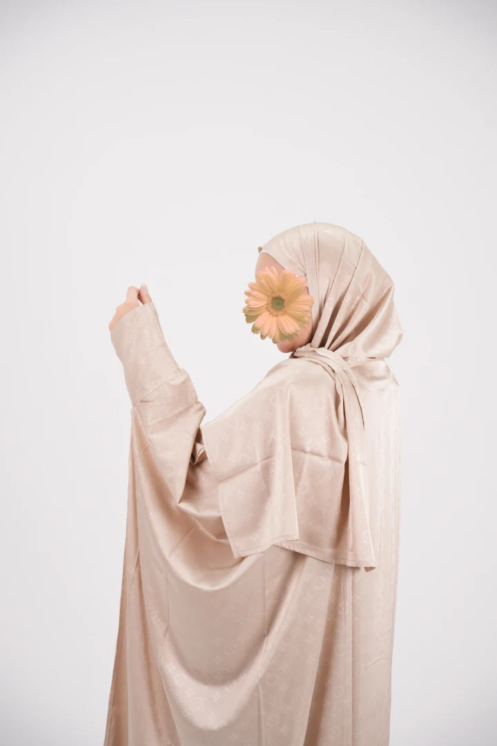 اكتشفي عالماً من الرقي والتميز مع مجموعة الإسدال الستان الفاخرة. تم تصميم هذه القطعة المميزة من خامة الستان الناعمة والانسيابية لتمنحك إطلالة راقية تعكس ذوقك الرفيع وشخصيتك المتميزة في كل المناسبات.